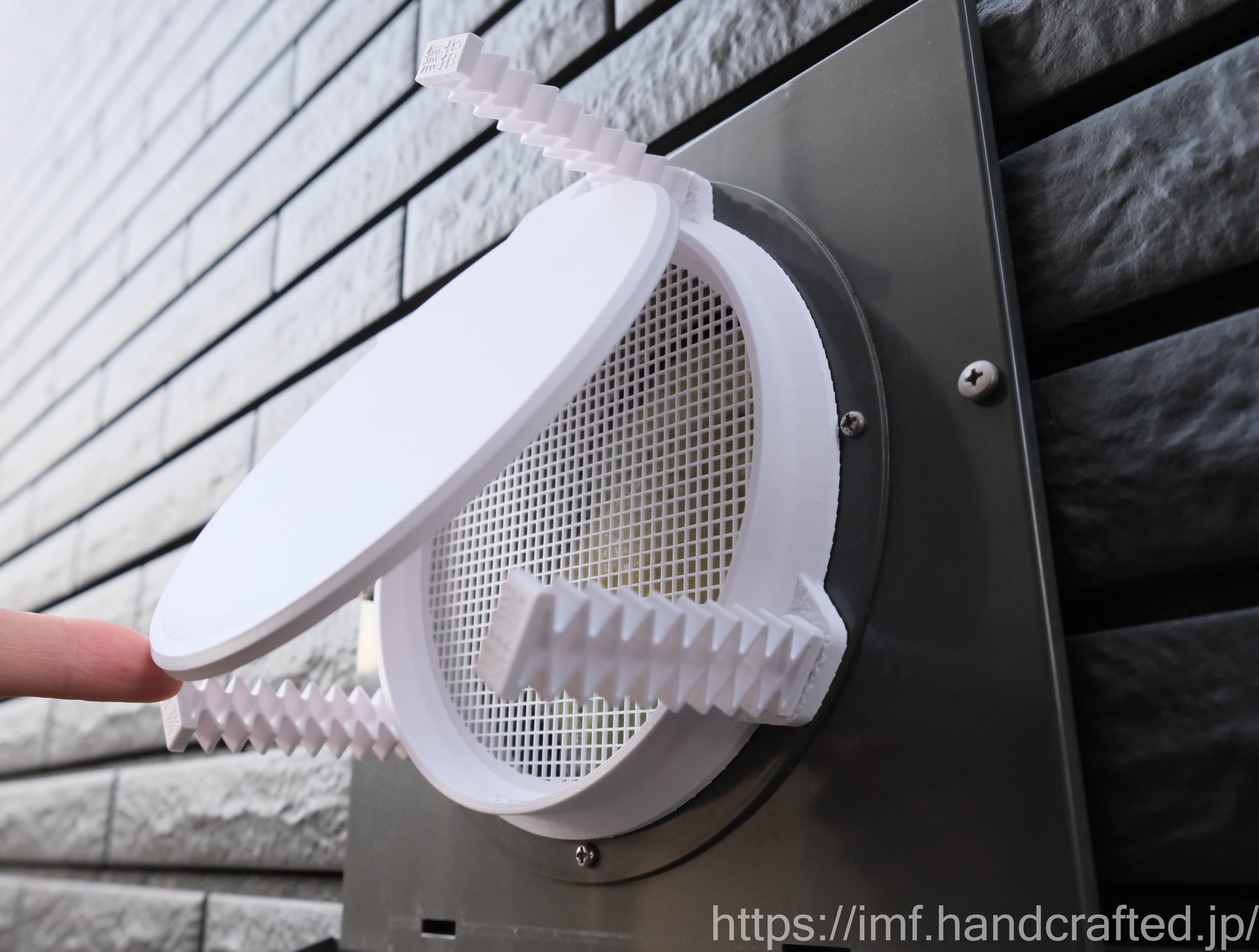 ・写真では換気口カバーを取り外して撮影しています。当アイテムを取り付け後は換気口カバーを元に戻してください。