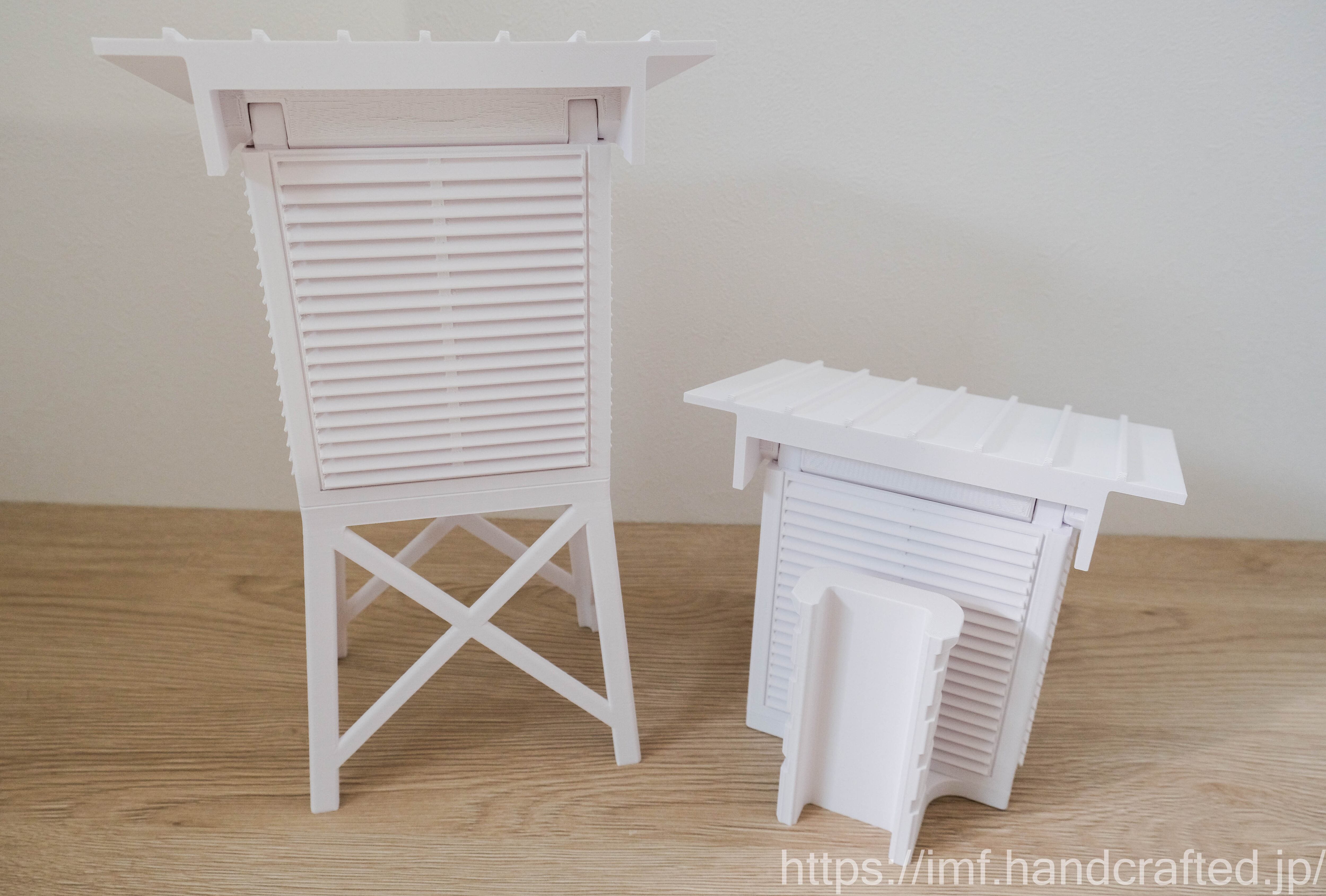 一条工務店から引き渡し時にいただけるCITIZEN THM527用(以下,温度計)のミニ百葉箱です。